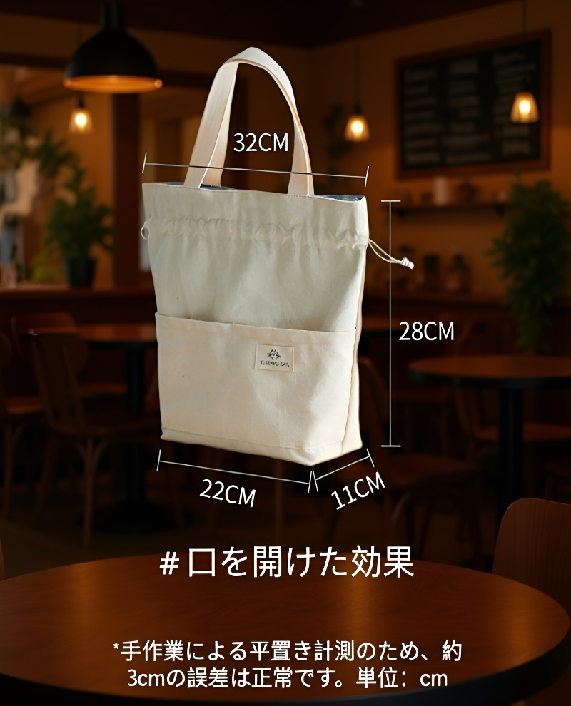 ● 日本風デザインを採用したおしゃれな厚手キャンバス素材で、日常使いにもファッション性抜群のランチバッグです。